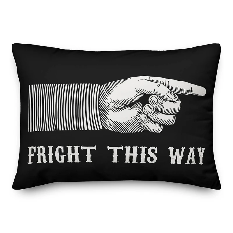 This beautiful indoor throw pillow was designed and printed in the USA.Details:Fright This Way design14" x 20"Double-sided printSpot and dry clean onlyPolyester and polyfill fillingSpun polyester cover