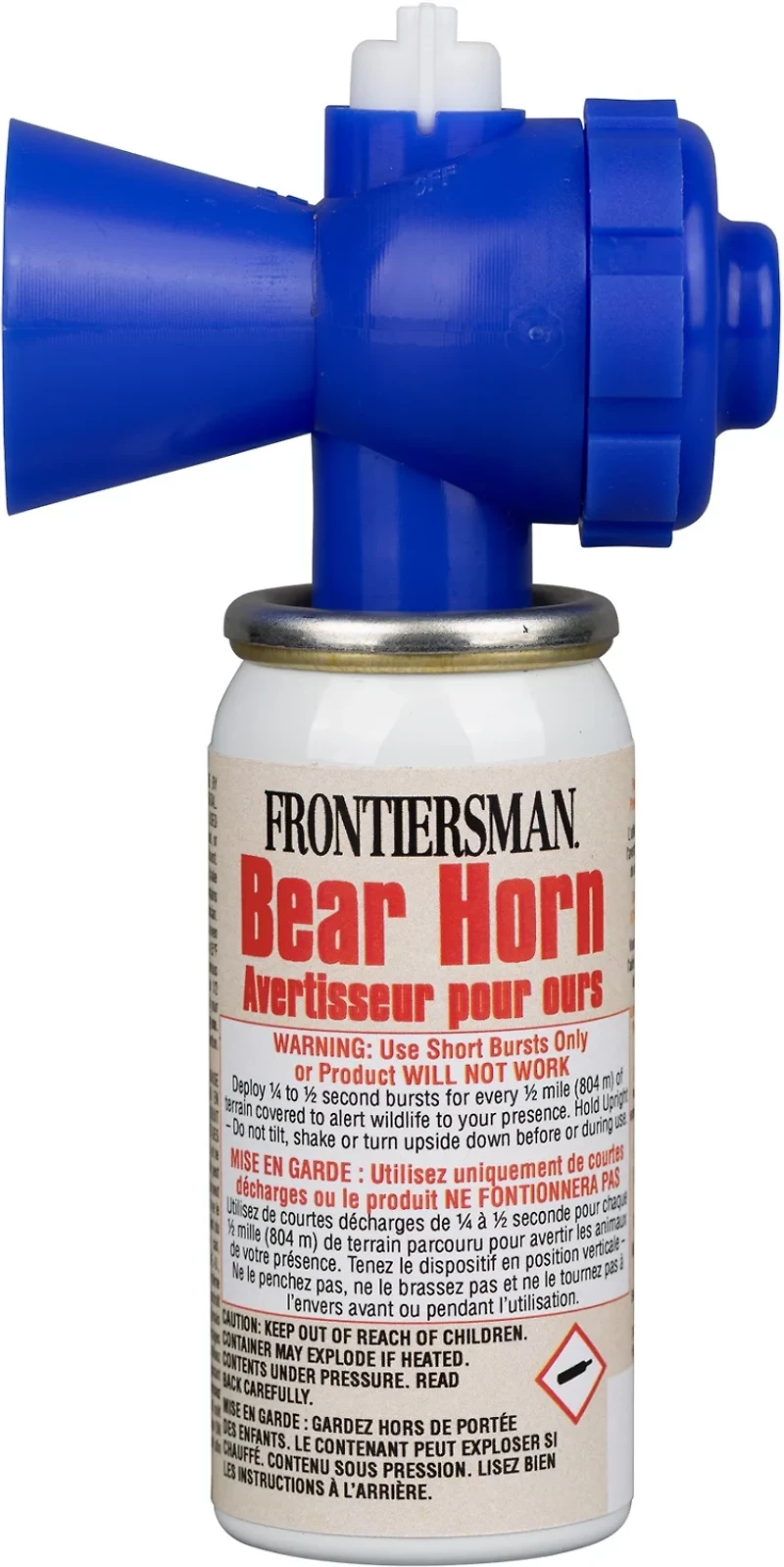Head out into your next hike with the Frontiersman Locking Bear Horn. The 115-decibel horn can reach up to 0.5 miles, and the compact design makes it easy to pack away.