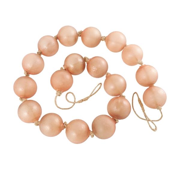 Beautiful style is in the details! Drape this Frosted Amber Glass Bead Garland over your mantel or use it as bowl filler for an elevated bohemian touch! Garland measures 91L x 3 in. in diameter Crafted of glass and jute Frosted pink finish Oversized bead design Hangs from brown jute loops Care: Dust with a soft, dry cloth. This item is available at Kirklands.com only, not available in stores. Please note: this item cannot be shipped to APO/FPO addresses.