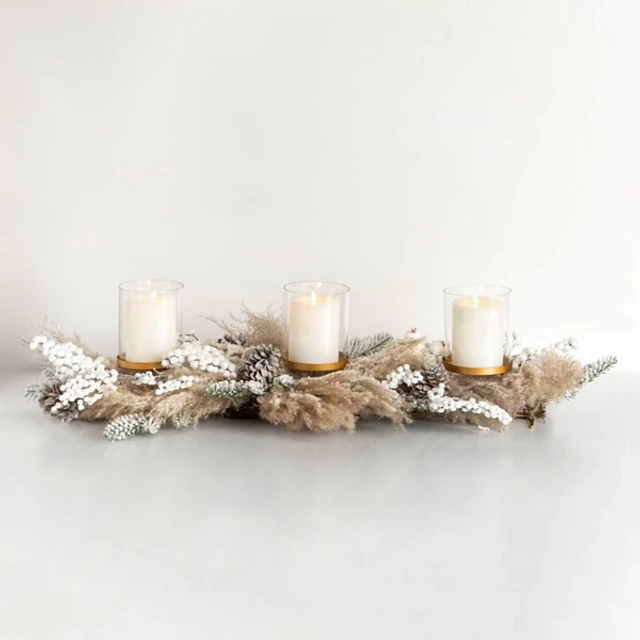 31" Pine & Berry Centerpiece Candle Holder