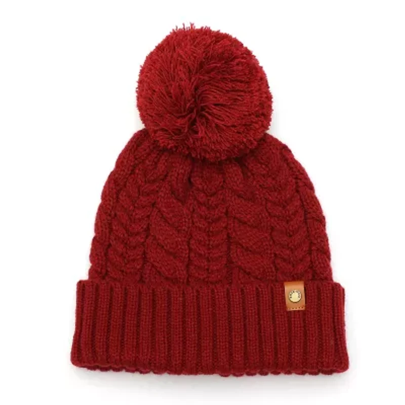 This Frye and Co. women's pom pom beanie has a chic classic texture and style you'll need in your closet for cooler temps. Crafted from a soft cable knit, this beanie comes complete with a wide ribbed cuff.