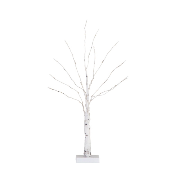 Bring a sense of winter enchantment into your home with this 2 ft. Pre-Lit White Birch Tree. Wrapped with 60 LED lights, this tree makes a simple yet stunning centerpiece that will beautifully illuminate your home. Tree measures 2H ft. with a 16 in. diameter Crafted of plastic and metal Distressed white finish Birch tree design Pre-lit with 60 LED lights Bendable branches Includes a metal stand Requires two (2) AA batteries; batteries not included Care: Store in cool, dry place. Exposure to excessive heat/humidity may cause damage. Fire resistant for safety purposes. This item is available at Kirklands.com only, not available in stores. Please note: this item cannot be shipped to APO/FPO addresses.