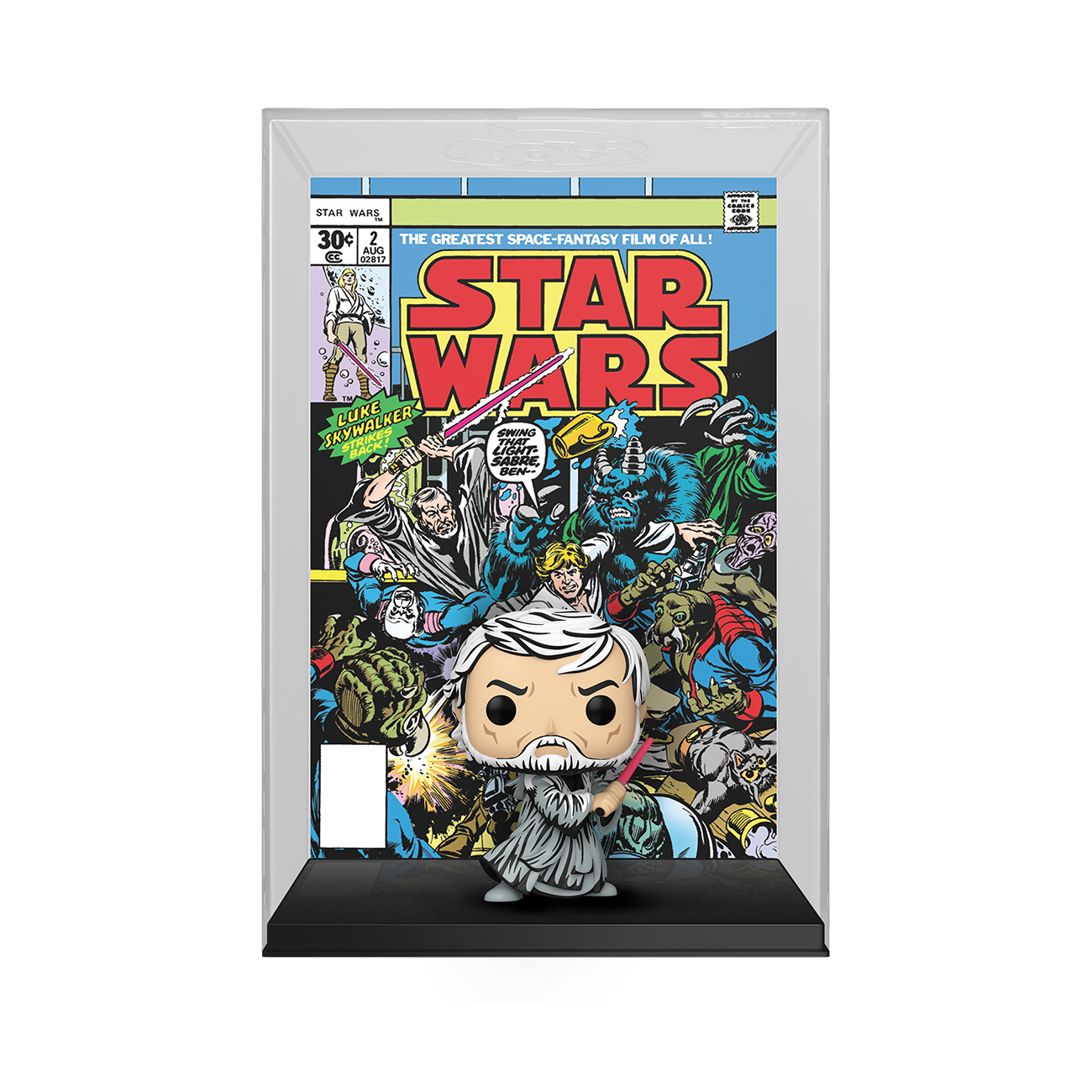 The Star Wars #2 comic book, released on August 2nd, 1977, introduced Obi-Wan Kenobi to the comic’s plot and readers for the first time! The Star Wars Comic Cover Pop! Obi-Wan Kenobi is styled in classic comic cel shading to commemorate this captivating first appearance. This special collectible features the cover art for The Star Wars Number 2 and a Pop! of Obi-Wan Kenobi—all prepackaged in a protective case that can be hung on your wall! Complete your Star Wars comic collection with this Pop! Comic Cover Obi-Wan Kenobi collectible. Vinyl figure is approximately 4.5-inches tall. Approximate dimensions of protective case: 7”W x 10.75”H x 3.25”D