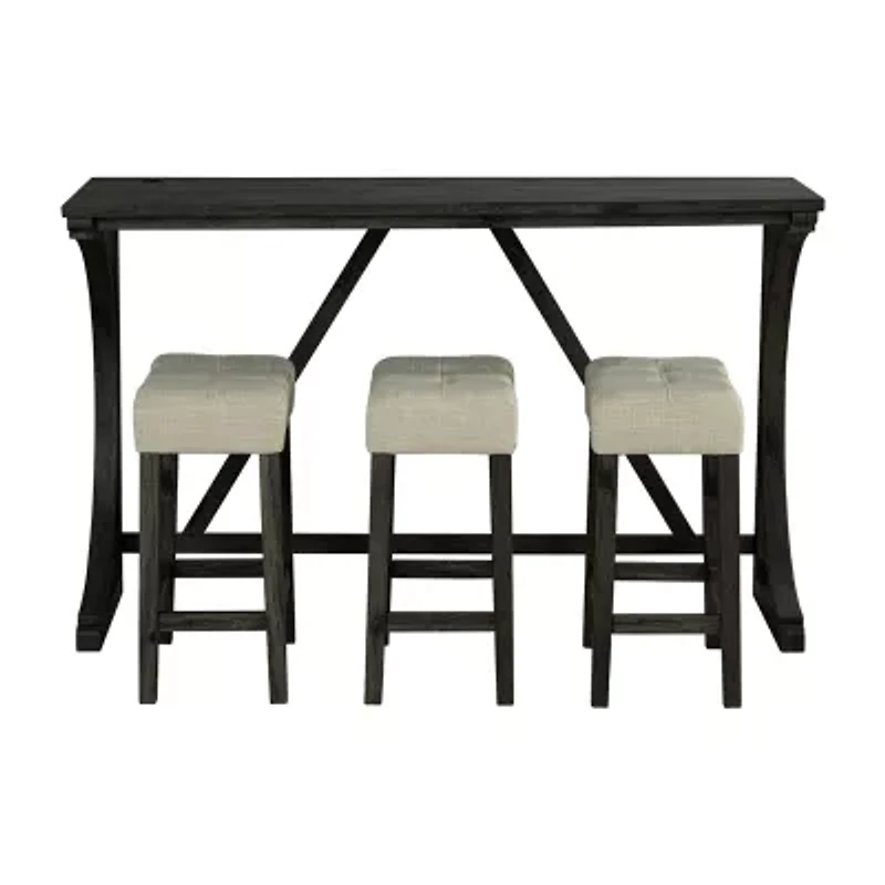 This 4-piece compact counter height dining set includes three stools with biscuit tufted upholstered seats for added comfort and style. The counter height table features sturdy trestle legs, offering a timeless design, while the built-in USB-A and USB-C charging ports provide convenient power access. Perfect for small spaces, this set combines modern functionality with classic elegance for a versatile dining solution.