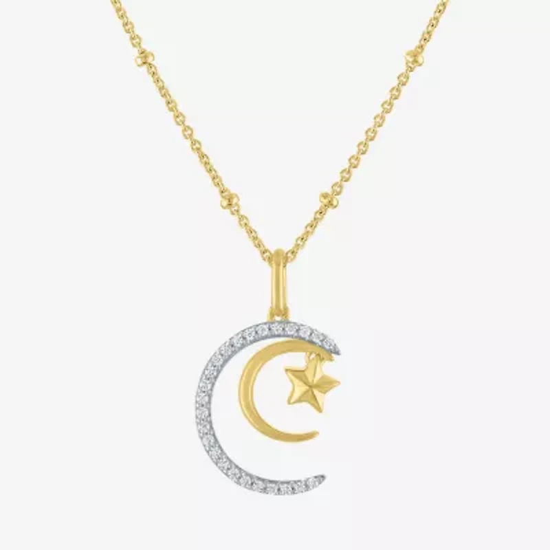 (G-H / I1-I2) Womens 1/10 CT. T.W. Lab Grown White Diamond 14K Gold Over Silver Sterling Silver Moon Star 18 Inch Pendant Necklace in Chattanooga, TN
