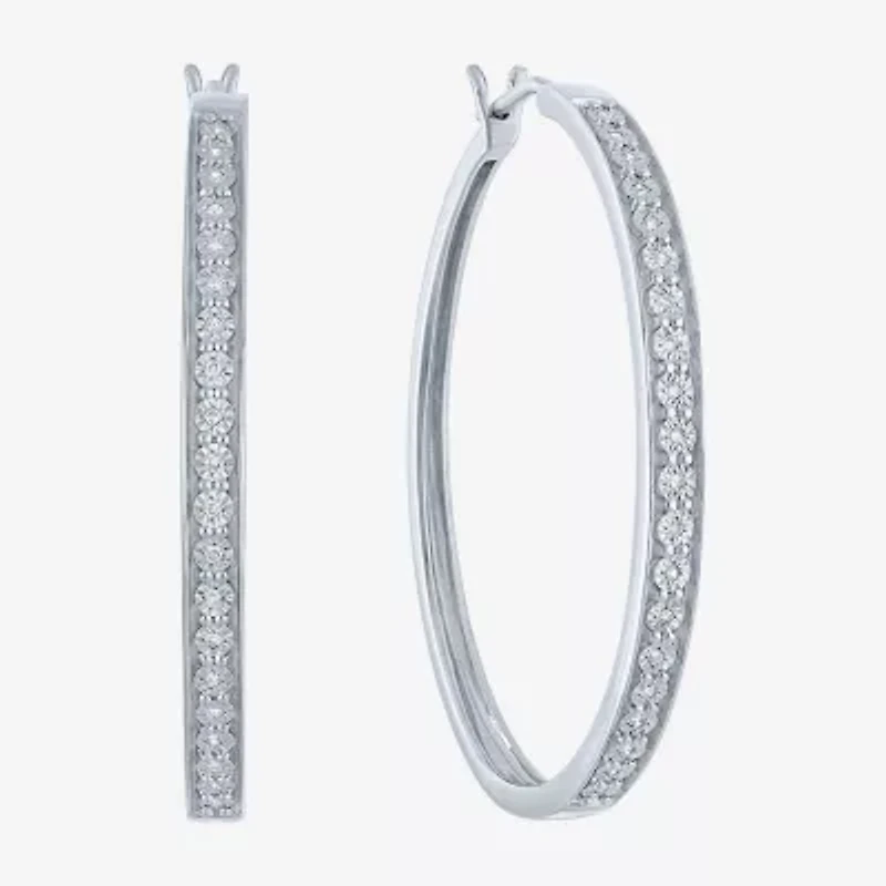 (G-H / I1-I2) Womens 1/10 CT. T.W. Lab Grown White Diamond Sterling Silver 40mm Hoop Earrings