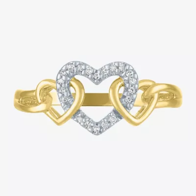 (G-H / I1-I2) Womens Diamond-Accent Lab-Grown Diamond 10K Gold Heart Cocktail Ring