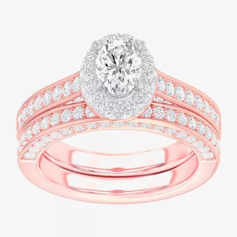 (G-H / Si1-Si2) Womens 1 7/8 CT. T.W. Lab Grown White Diamond 14K Gold Oval Side Stone Halo Engagement Ring