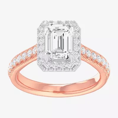 (H-I / Si1-Si2) Womens 1 5/8 CT. T.W. Lab Grown White Diamond 14K Gold Side Stone Halo Engagement Ring