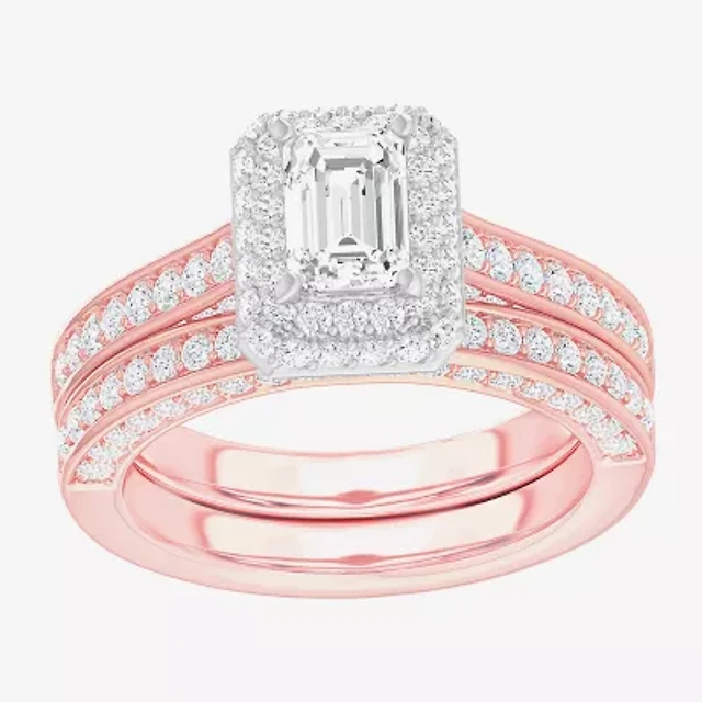 Signature By Modern Bride (G-H / Si1-Si2) Womens 7/8 CT. T.W. Lab Grown White Diamond 10K Gold Side Stone Halo Bridal Set