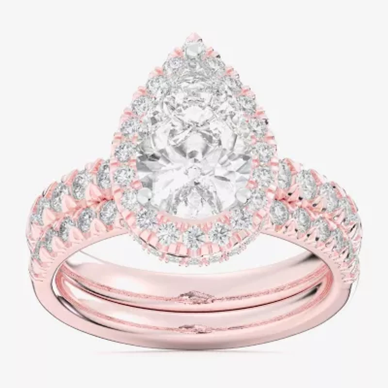 (G-H / Si1-Si2) Womens 4 1/4 CT. T.W. Lab Grown White Diamond 14K Gold Pear Side Stone Halo Bridal Set