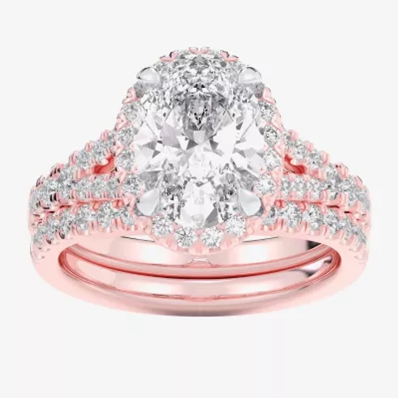 G-H / Si1-Si2) Womens CT. T.W. Lab Grown White Diamond 14K Gold Oval Side Stone Halo Bridal Set