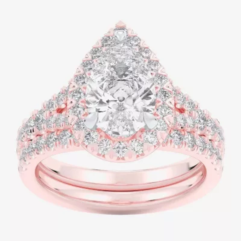 G-H / Si1-Si2) Womens / CT. T.W. Lab Grown White Diamond 14K Gold Pear Side Stone Halo Bridal Set