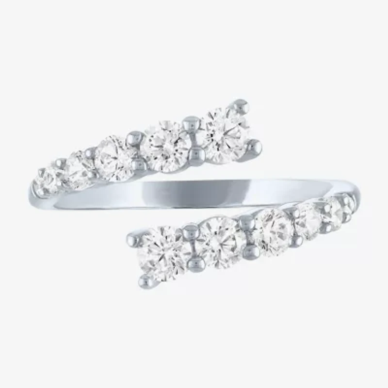 (G-H / Si2-I1) Womens 1 CT. T.W. Lab Grown White Diamond 10K Gold Bypass Cocktail Ring