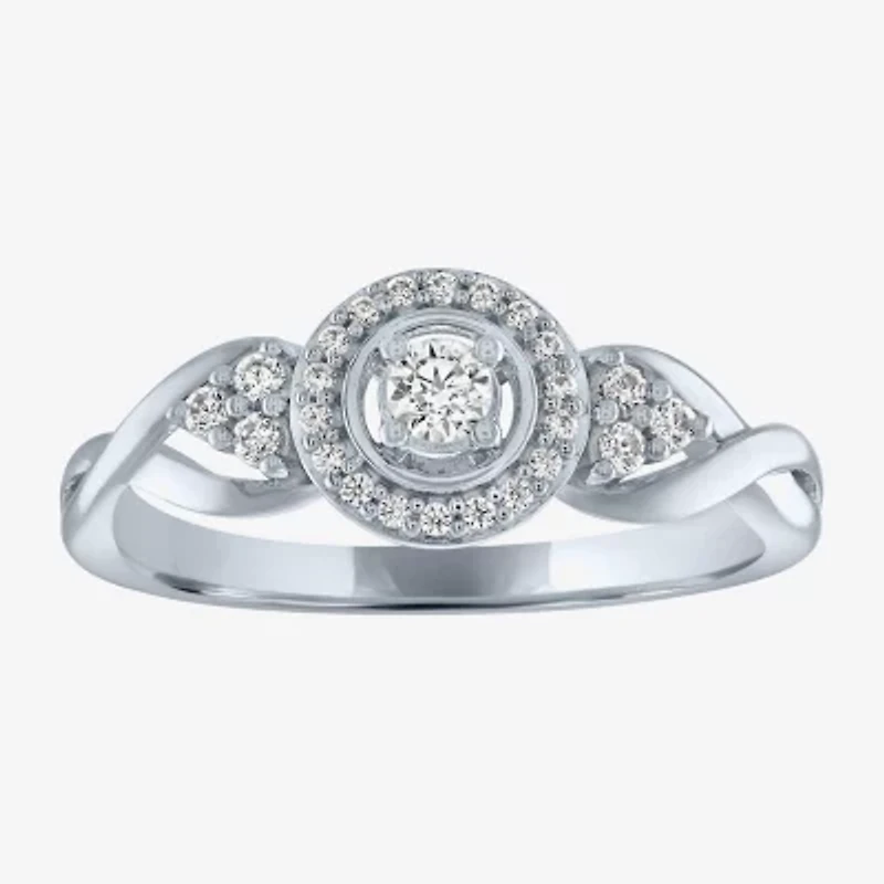 (G-H / Si2-I1) Womens 1/5 CT. Lab Grown White Diamond Sterling Silver Round 3-Stone Halo Promise Ring
