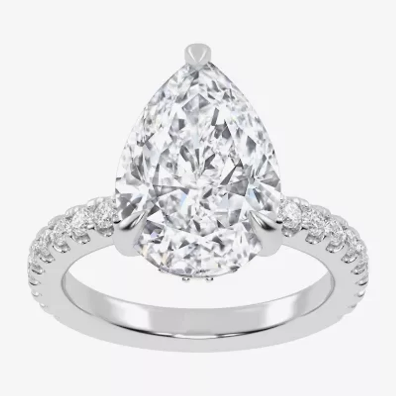 G-H / Vs2-Si1) Womens 1/ CT. T.W. Lab Grown White Diamond 14K Gold Pear Side Stone Engagement Ring