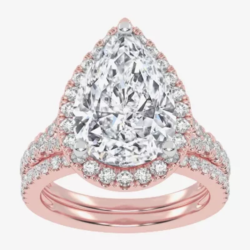 (G-H / Vs2-Si1) Womens 4 3/4 CT. T.W. Lab Grown White Diamond 14K Gold Pear Side Stone Halo Bridal Set