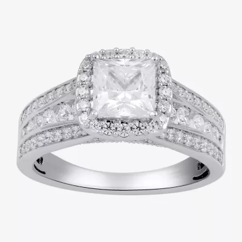 (G / I1) Womens 2 CT. T.W. Lab Grown White Diamond 10K Gold Side Stone Halo Engagement Ring