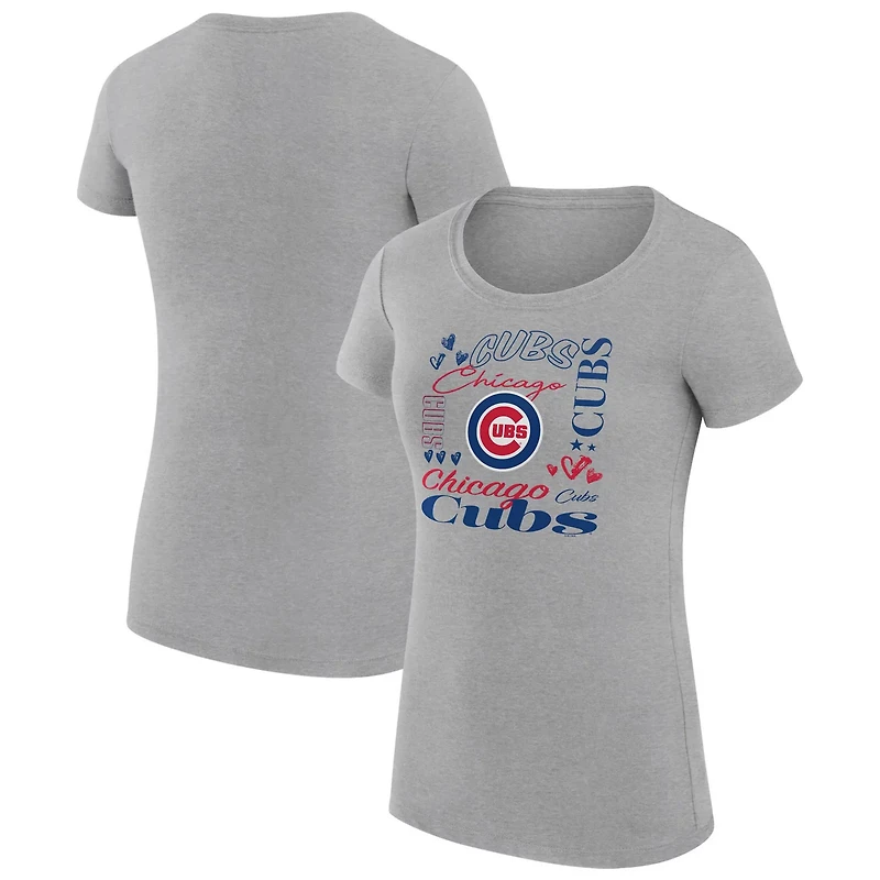 G-III 4Her by Carl Banks Chicago Cubs Super-Slim Fit Lightweight Collage Team Graphic Crew Neck T-Shirt
