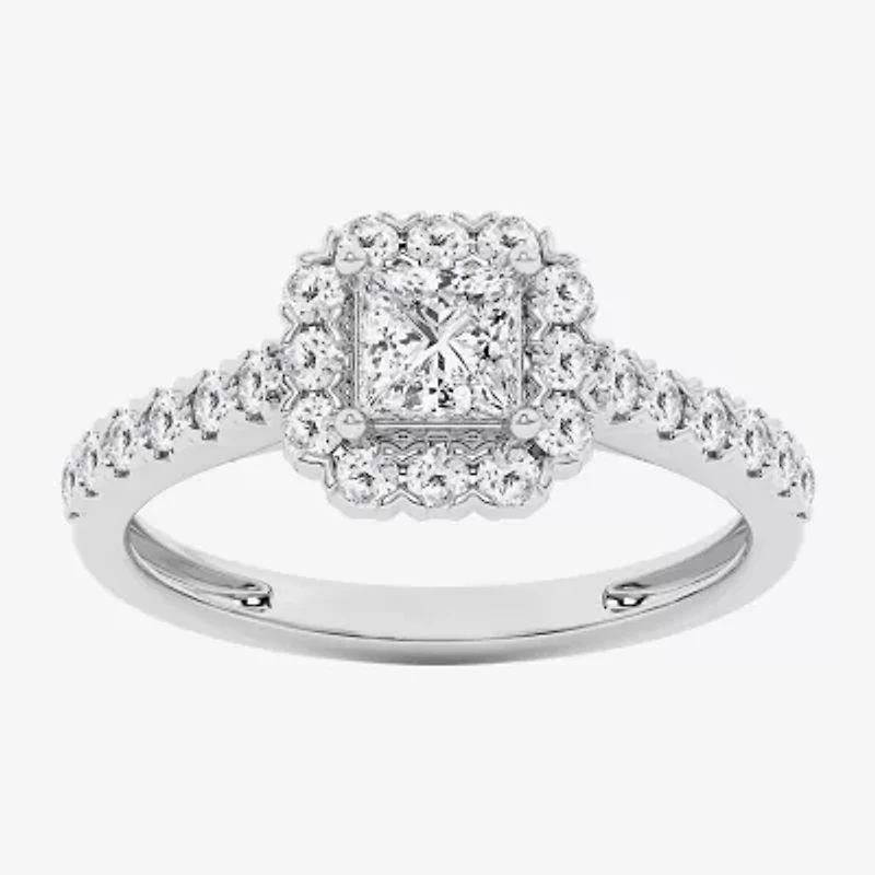 Make the moment you ask the love of your life to be forever yours extra special with this beautiful engagement ring. The 27 Lab Grown diamonds are set in polished 10K white gold with a dazzling princess cut center piece to highlight its design.