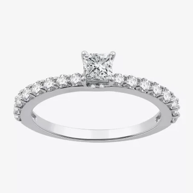 (G / Si1-Si2) Womens 1/2 CT. T.W. Lab Grown White Diamond 10K Gold Side Stone Engagement Ring