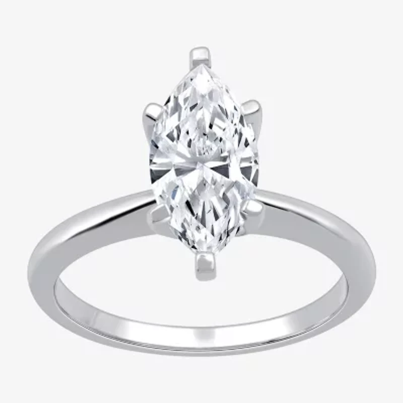 This women's solitaire engagement ring blends a timeless cut and a contemporary finish for the ultimate in sophistication. Made from 14K Gold, this ring features a certified 2 carat marquise-cut Lab-Grown Diamond as its sparkling centerpiece in a prong setting.