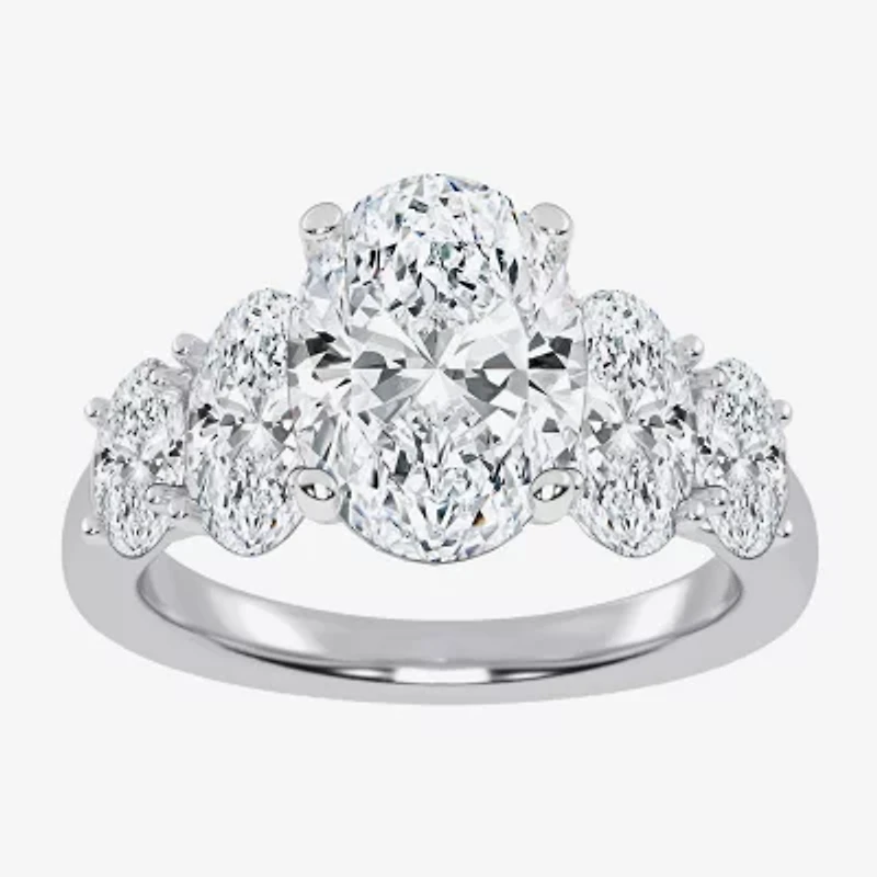 (G / Vs2-Si1) Womens 3 1/2 CT. T.W Lab Grown White Diamond 14K Gold Oval 5-Stone Engagement Ring