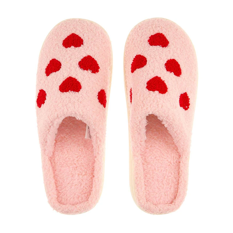 Crafted from soft, high-quality polyester, these slippers offer a plush, cushioned feel that keeps your feet warm and comfortable. The adorable pink color is adorned with vibrant red heart patterns, adding a fun and playful touch that is perfect for Galentine's Day or any day you want to show your feet some love.
