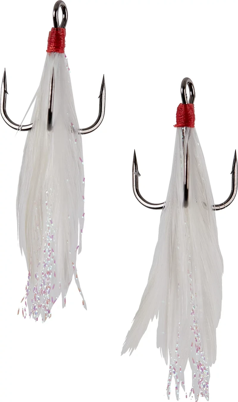 Add the Gamakatsu Feathered Treble Hook to almost any topwater bait and enhance the look of your lures. The feathered design creates an attractive appearance. The hand-tied design promotes durability and quality, while the Round Bend treble hook offers sharpness and a strong hold.