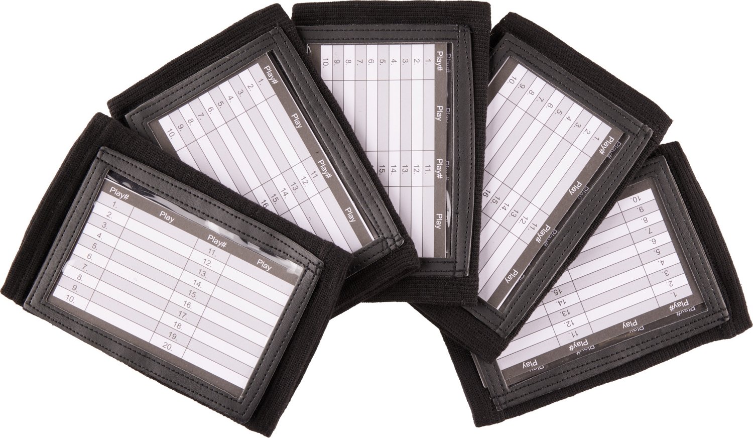 Keep your plays secure and handy with the Game On Adult Wrist Playbook 5-Pack. This 5-pack of wrist playbooks has 3 play panel compartments for organization. The knit tube provides comfort, while the PVC window protects your plays and provides clear viewing.