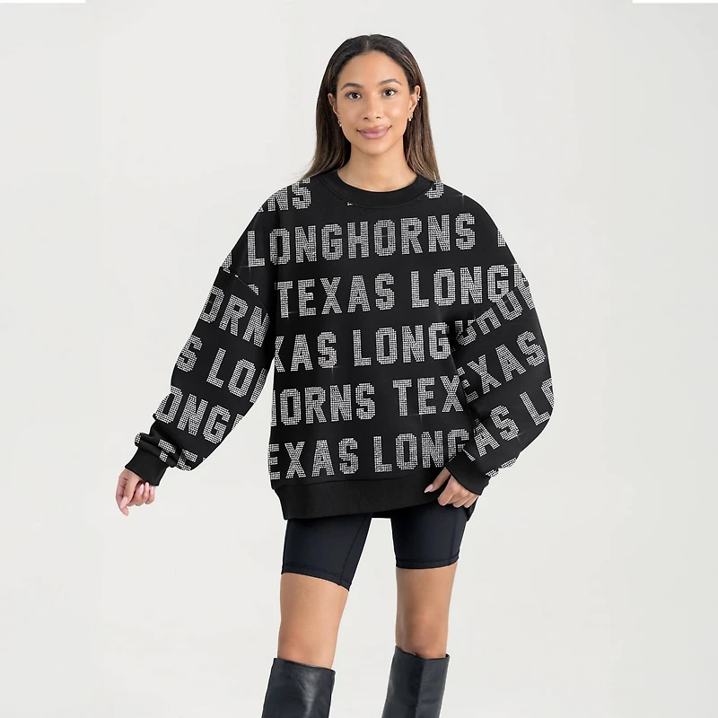 Show off your die-hard fandom in style with this Texas Longhorns Hype Era Sweatshirt from Gameday Couture The dropped shoulders provide increased range of motion and a cozy look perfect for layering on game day The all-over rhinestone team name adds a touch of sparkle and undeniable team spirit to your Texas Longhorns wardrobe
