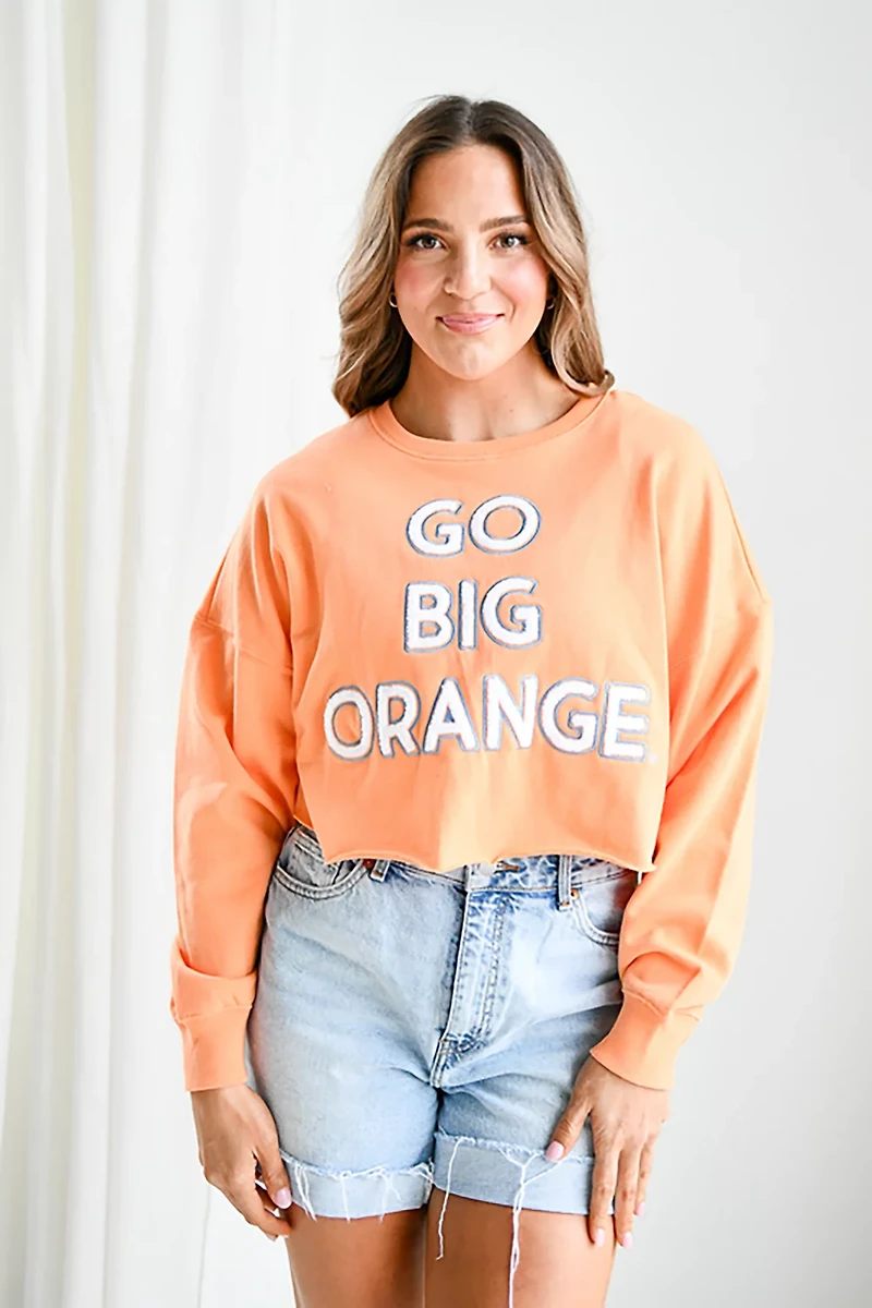 Gameday Social Women's University of Tennessee Volunteers Perkins Chenille Slogan Cropped Long Sleeve Crew T-shirt in Chattanooga, TN