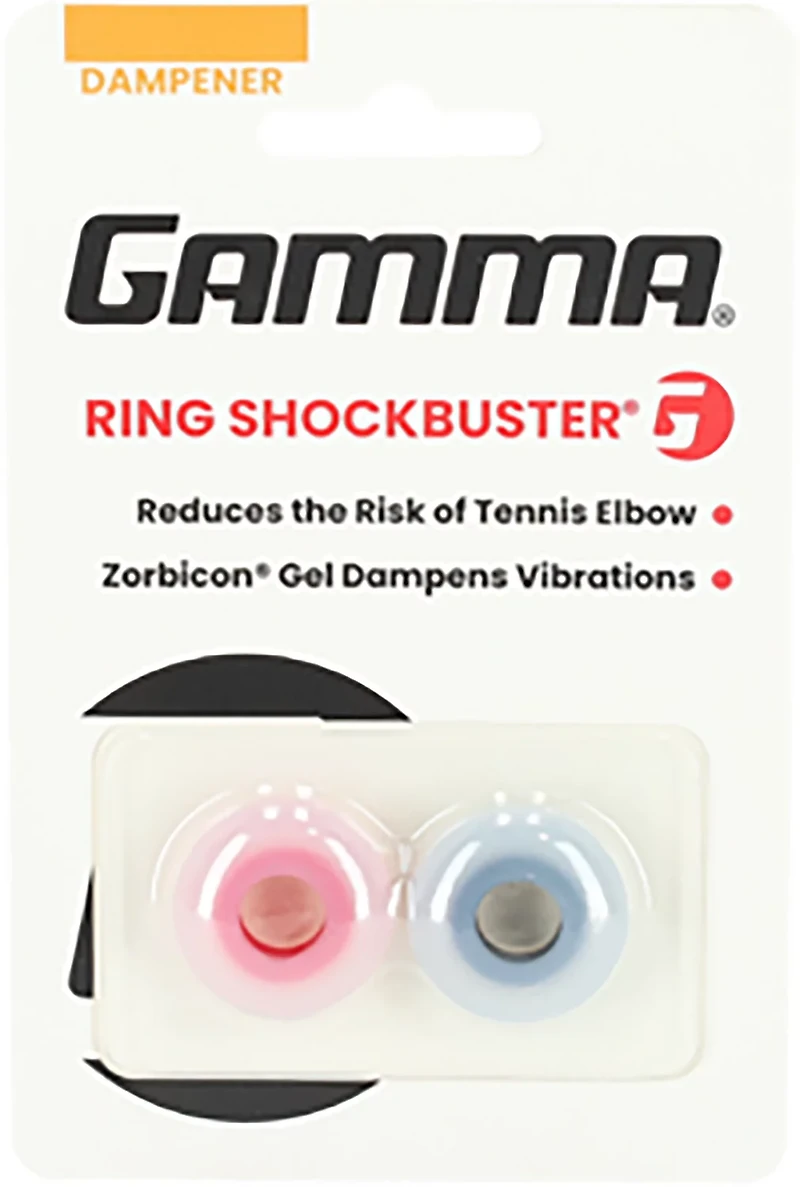 Improve your game with the Gamma Shockbuster Ring 2-pack. Its Zorbicon® gel technology effectively shields against harmful vibrations, reducing the risk of tennis elbow for a more enjoyable playing experience. The unique ring design strategically places the Zorbicon® gel produces a secure fit during intense rallies, and its 2 dampeners offer convenience for multiple racquets or sharing with a doubles partner.
