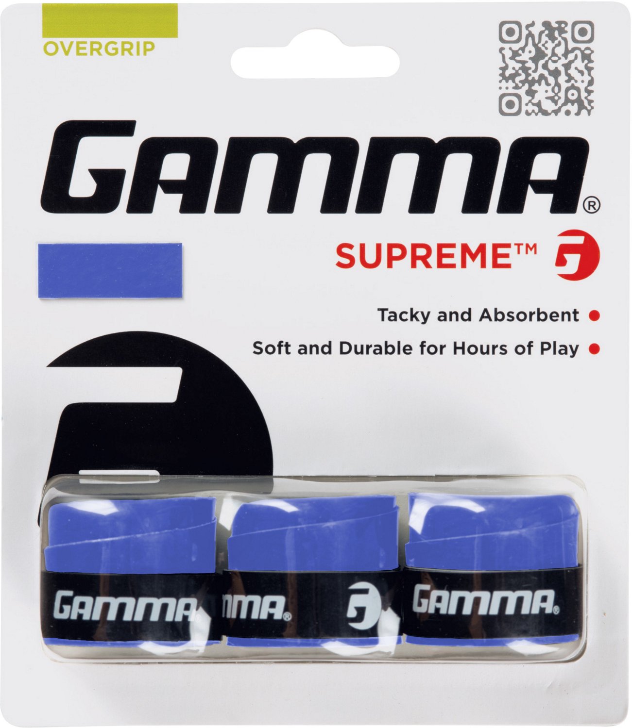 Minimize vibration and amp up your gripping power with the Gamma Supreme Tennis Overgrip. The silicone rubber is both tacky and absorbent for an optimal feel while you play.