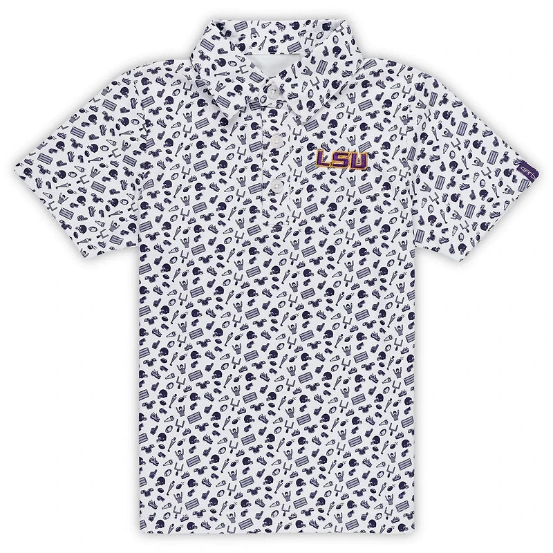 Let your kiddo show their LSU Tigers spirit with this Tom Allover Print Performance Polo from Garb With an all-over football design and embroidered team logo this polo lets them show their LSU Tigers spirit in style The soft breathable fabric and relaxed fit keep them comfortable whether they're cheering from the stands or playing in the backyard