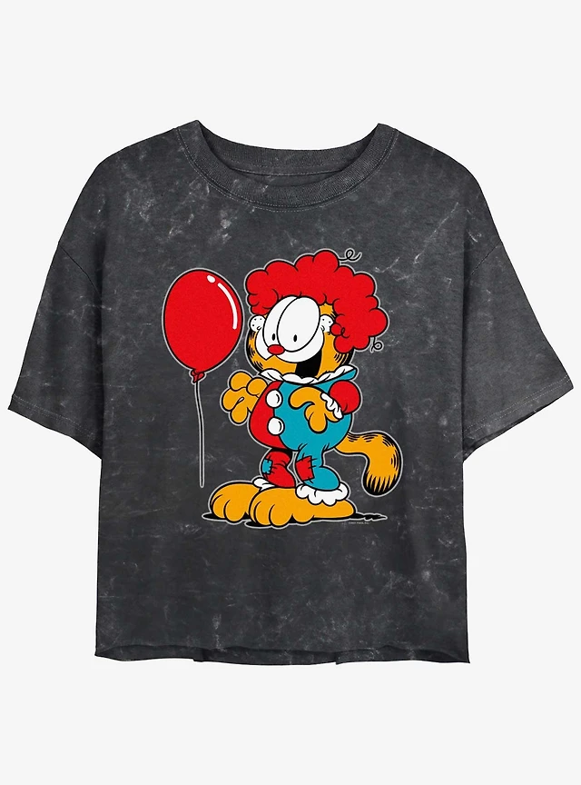Garfield Clown Cat Womens Mineral Wash Crop T-Shirt