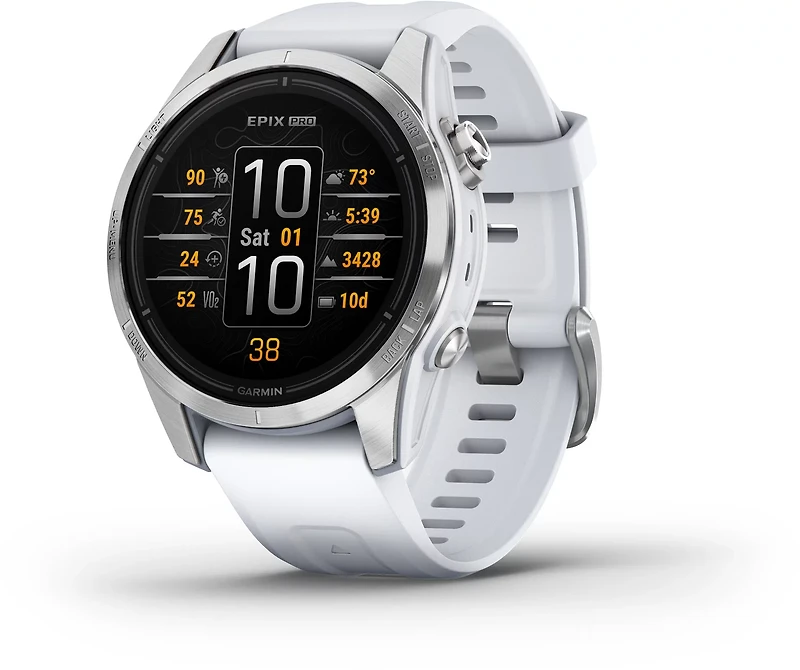 Dig into the data with the Garmin epix Pro Gen 2 42 mm Smartwatch. The AMOLED display features a responsive touchscreen, and the silicone strap allows for comfortable wear. A training readiness feature keeps track of your health metrics to maximize training efficiency and recovery, while the sleep coach helps improve your sleep score.