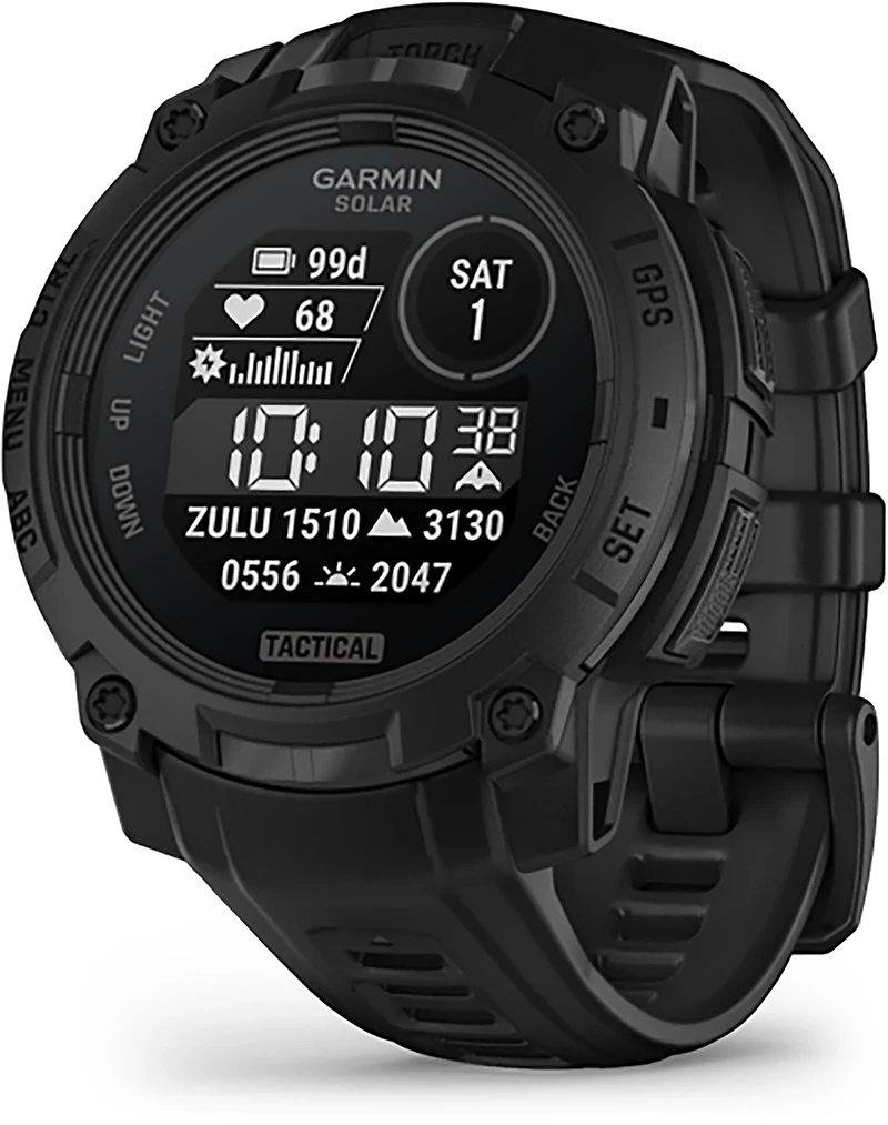 • Dedicated tactical features include a jumpmaster activity, waypoint projection, dual-position GPS format, preloaded tactical activity, stealth mode, kill switch, and rucking activity to keep you on your toes