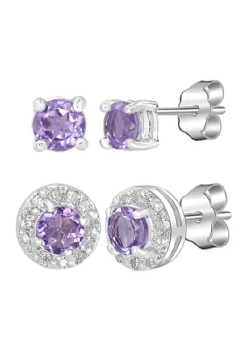 Garnet and White Topaz Stud Earring Set Sterling Silver