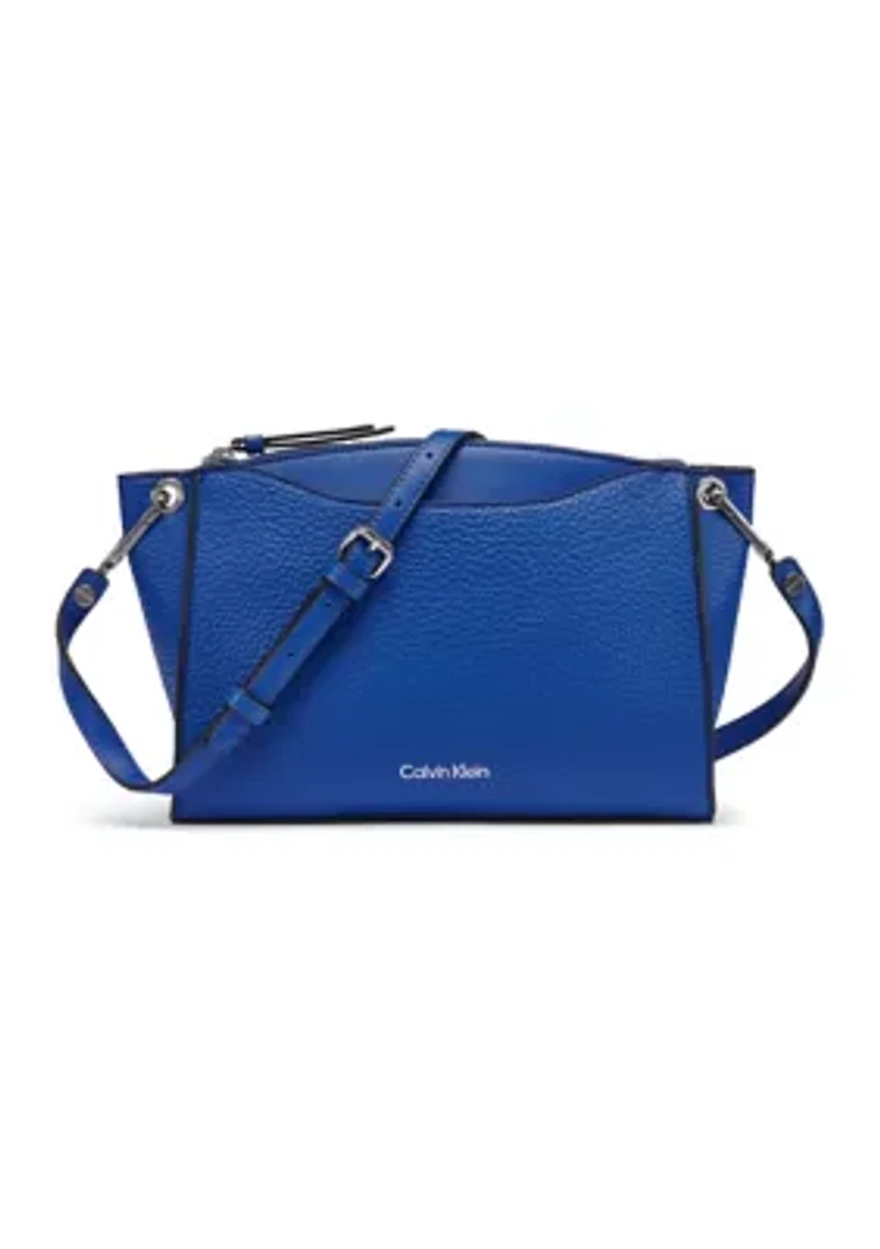 Stash your essentials in the stylish Garnet crossbody from Calvin Klein. Zip closure Crossbody strap with 23" drop Interior: 2 slip pockets, 1 zip pocket Imported Product Specifications 10.5" W x 7" H x 3" D Material & Care PVC trim PVC Spot clean only