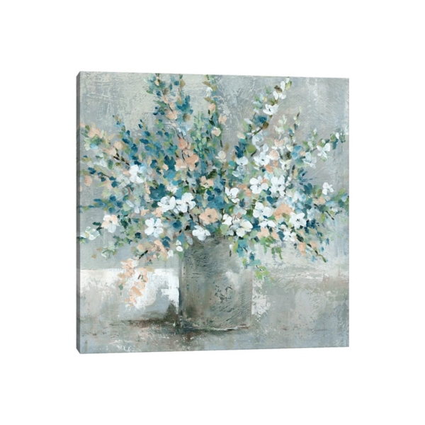 Freshen up your space with the breathtaking bouquet captured in this Gathered From the Farm Canvas Art Print. Pops of blue and pink will bring life to your walls! Overall dimensions Width: 18 in. Depth: 1.5 in. Height: 18 in. Distinctively printed on stretched canvas Wrapped edges complete the look Uses fade-resistant, Epson UltraChrome™ inks Features a floral subject Hues of blue, gray, white, pink, and green Artist: Carol Robinson Weight: 4 lbs. Hangs from back-mounted hardware Made in USA by highly trained craftsmen Care: Dust with a soft, dry cloth. Avoid exposure to high heat, moisture, and humidity. This item is available at Kirklands.com only, not available in stores. Please note: this item cannot be shipped to APO/FPO addresses.