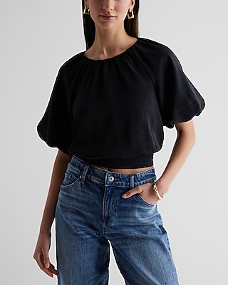Gathered Neck Puff Sleeve Banded Bottom Top in Chattanooga, TN
