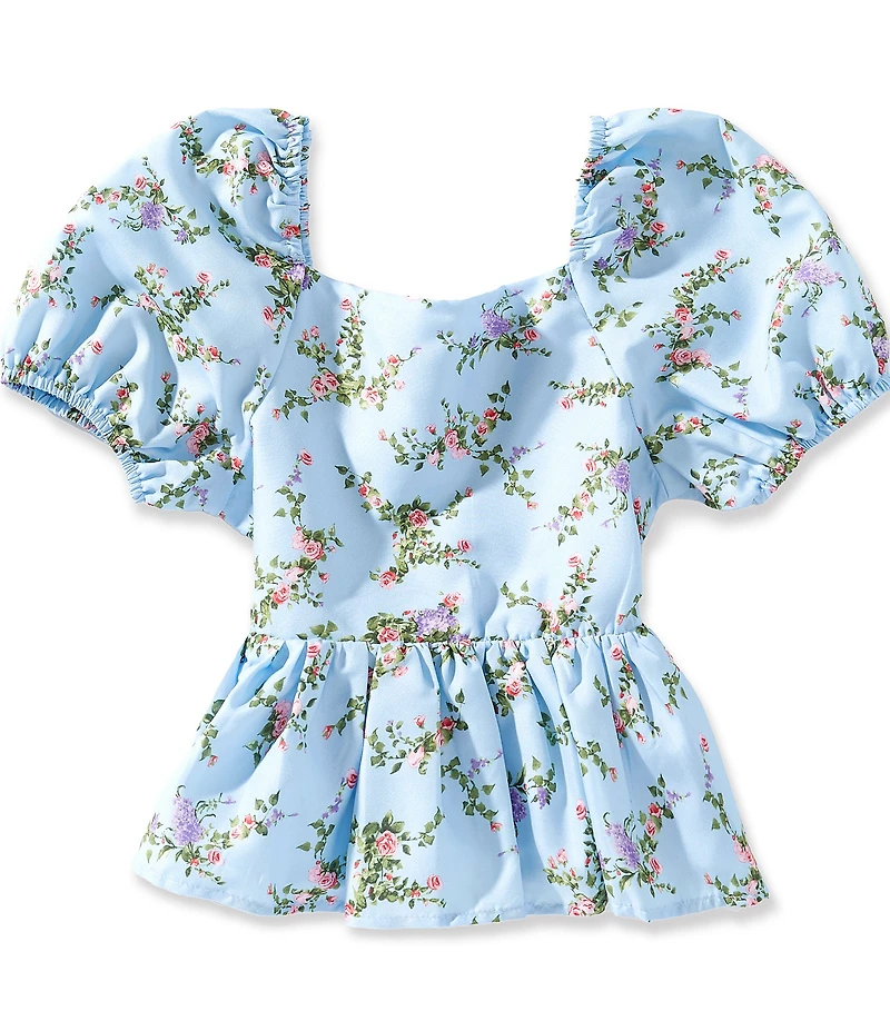 GB Big Girls Puff Sleeve Floral Woven Babydoll Top