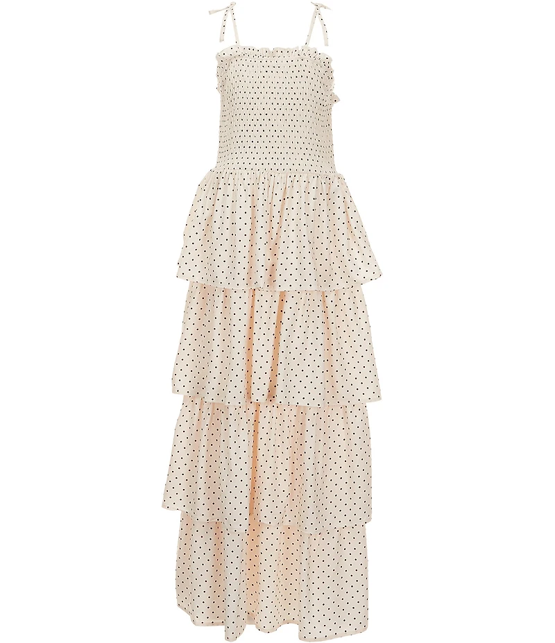 GB Girls Smocked Spaghetti Strap Micro-Dot Tiered Maxi Dress