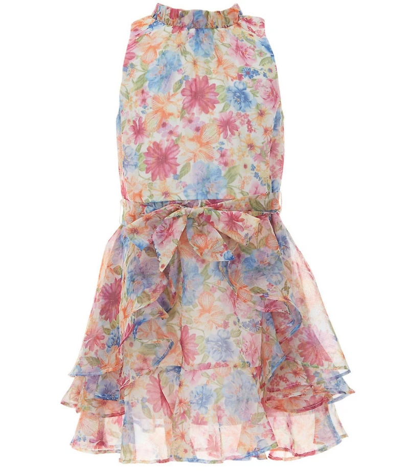 GB Social Little Girls Sleeveless Floral High Neck Dress
