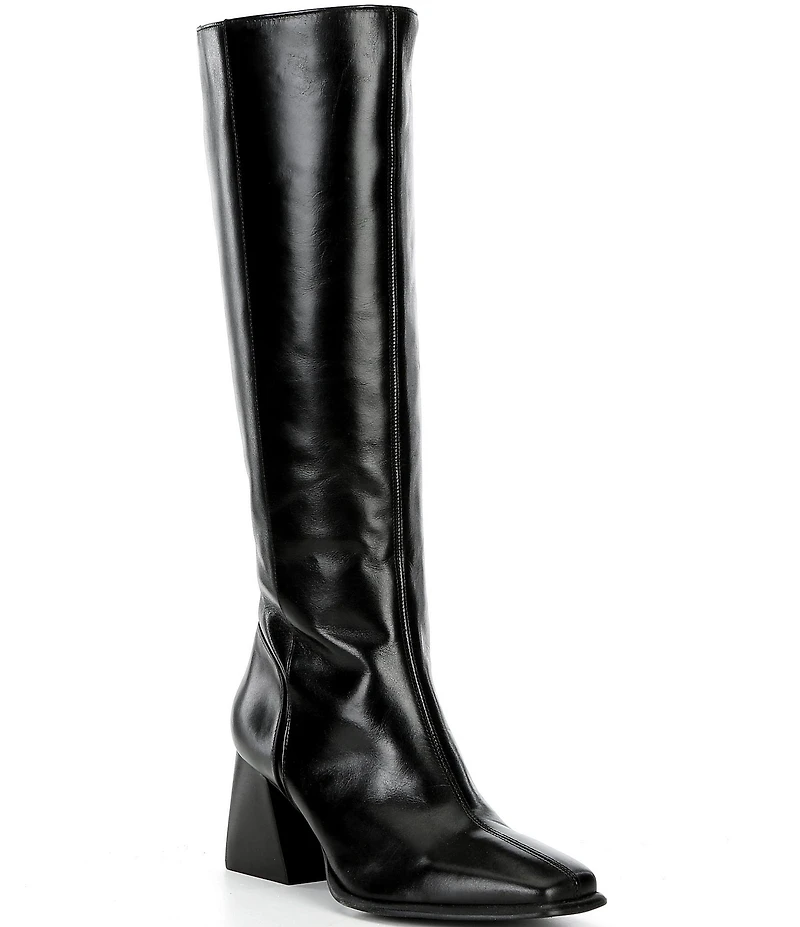 GB Sole-Sister Glossy Leather Square Toe Block Heel Tall Boots