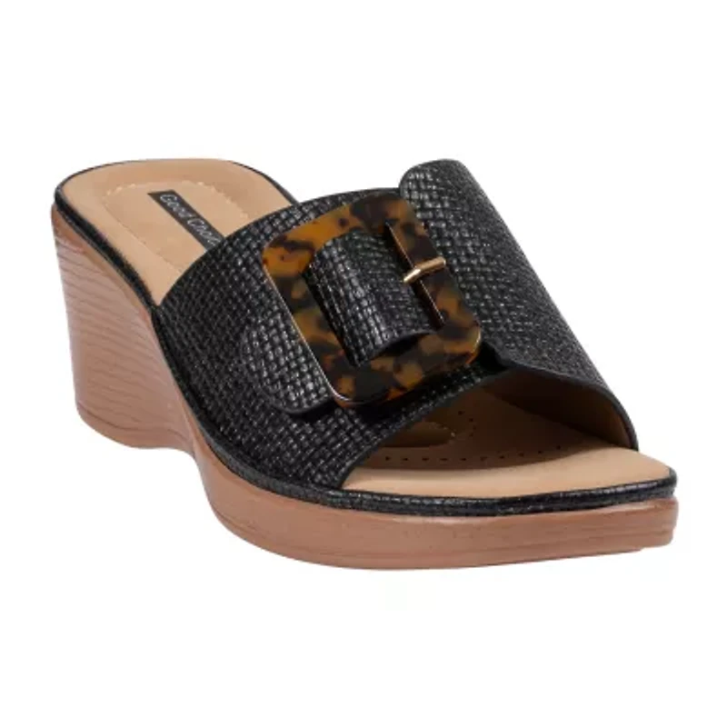 GC Shoes Womens Teri Woven Buckle Wedge Sandals