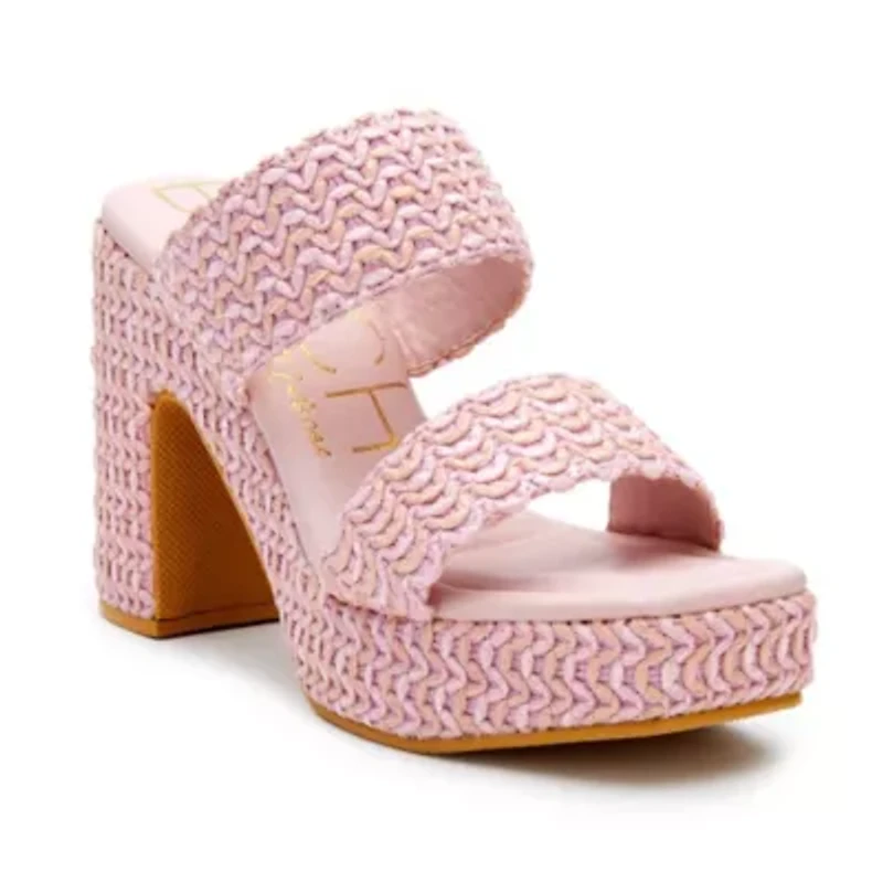 Vegan, two-band platform with squared off toe. Slip-on China Imported Product Specifications 4 in / 10.16 cm 1 in / 2.54 cm M Material Leather Fabric