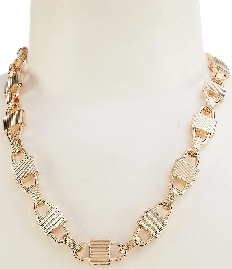 Gemma Layne Line Textured Square Metal Oval Link Chain Collar Necklace