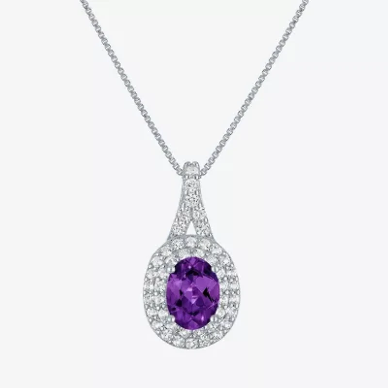 Gemstone & Lab-Created White Sapphire Sterling Silver Halo Pendant Necklace in Chattanooga, TN